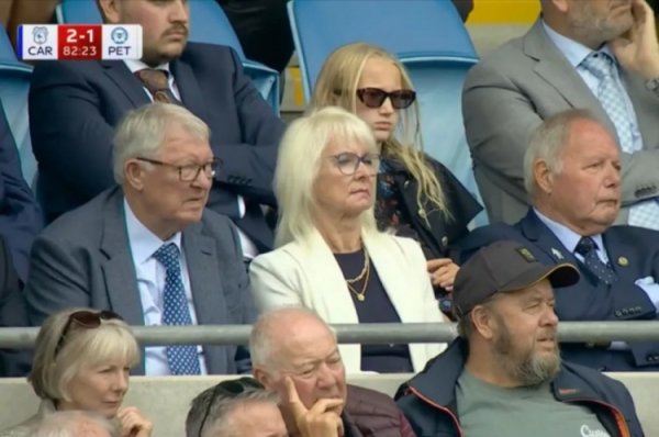 镜报:现场支持儿子达伦-弗格森,弗格森现身英甲赛事 看台