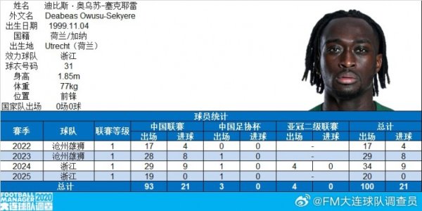 博主:浙江队外援奥乌苏完成代表中国职业俱乐部100场里程碑