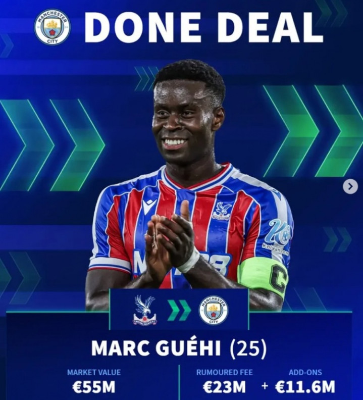 直播吧1月20日讯曼城已经官宣签下水晶宫领队 格伊,《转会市场》统计显示他位列水晶宫队史卖人榜第6位。