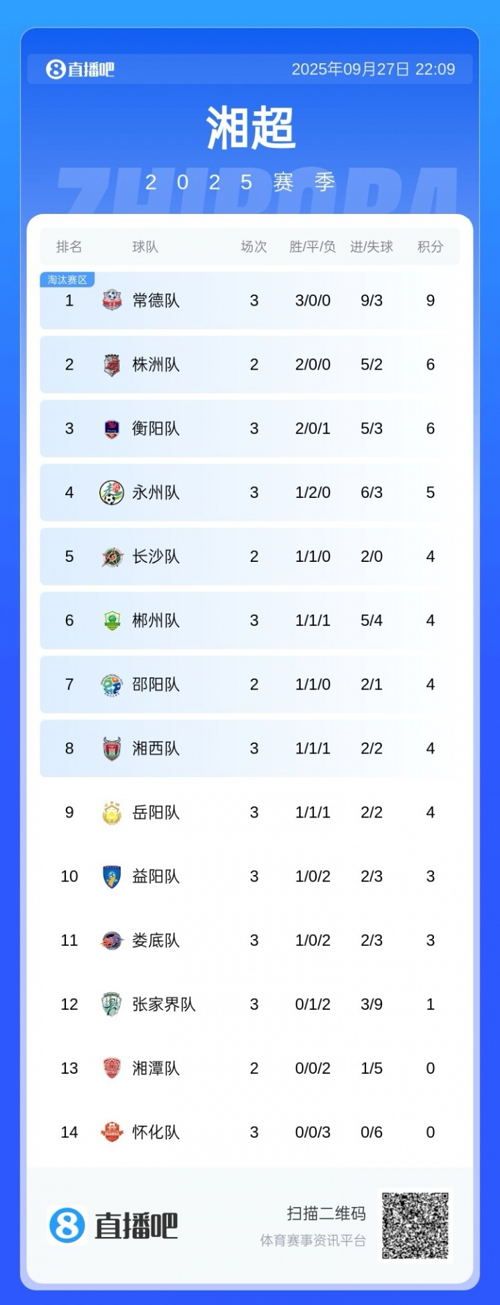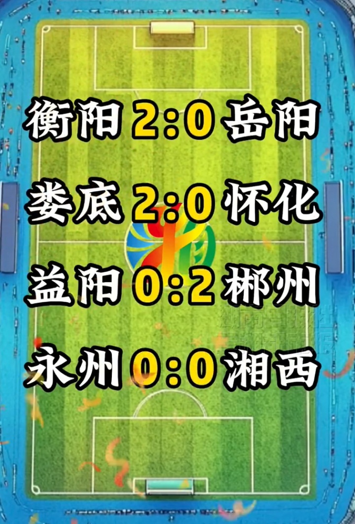 湘超:衡阳2-0岳阳、娄底2-0怀化、益阳0-2郴州 常德3连胜暂领跑