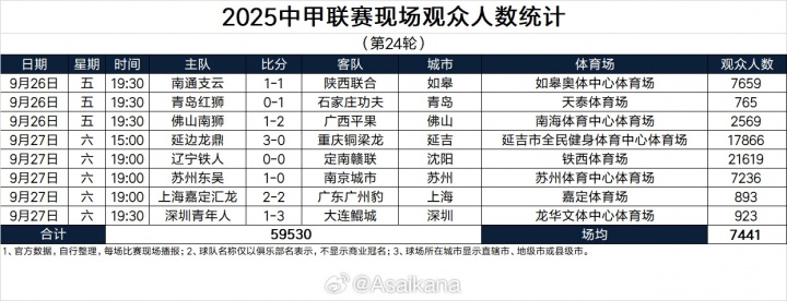 > 2025中甲职业联赛 现场观赛人群 人数统计(第24轮)