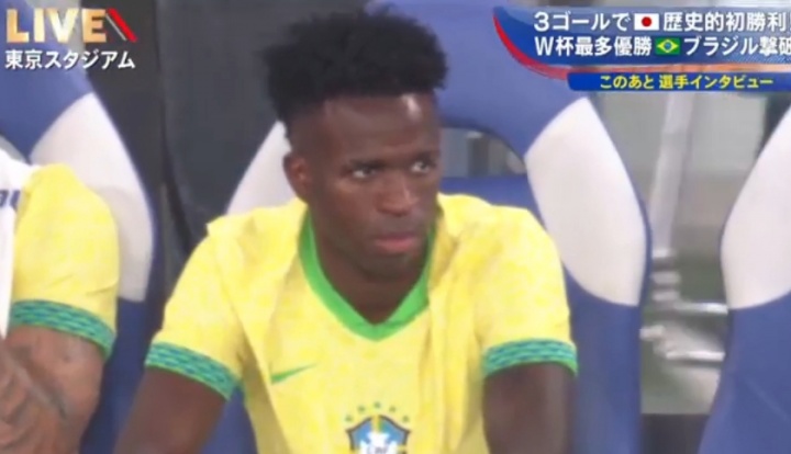 > 彻底懵了!巴西遭日本让二追三反转 ,维尼修斯场边呆坐+目光呆滞