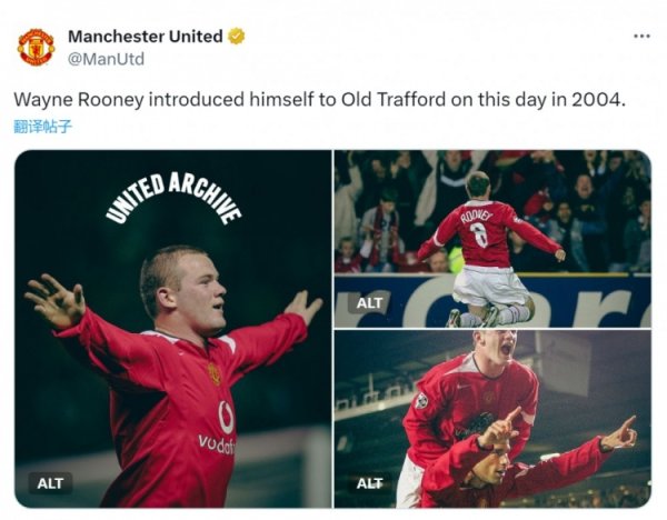 戴帽+定位球直接破门!曼联官方回顾21年前的今天鲁尼首秀