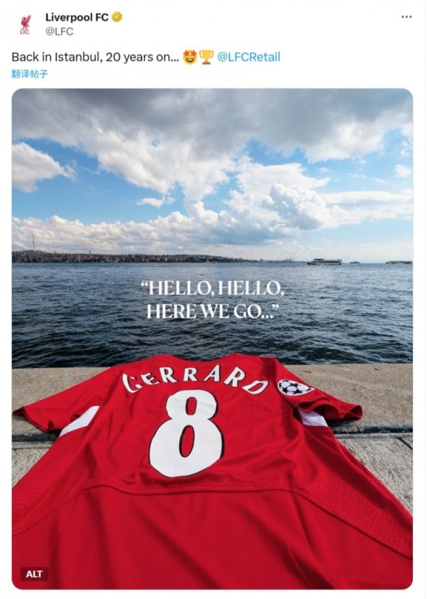 利物浦官方晒杰拉德运动活动 服 :20年后重回伊斯坦布尔