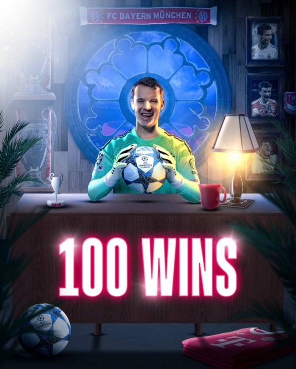 诺伊尔成欧冠第4位收获100场获胜 的球员,在他之前是C罗穆勒卡西