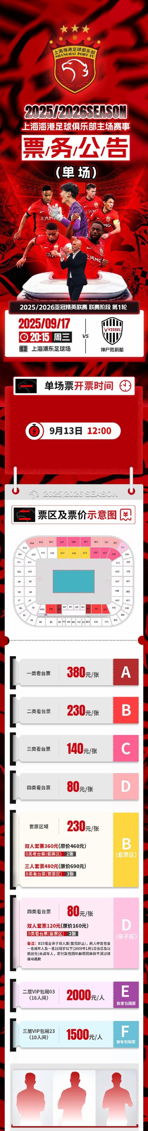 票务公告 亚冠精英职业联赛 第1轮 海港vs获胜 船 将于9月13日12:00开票