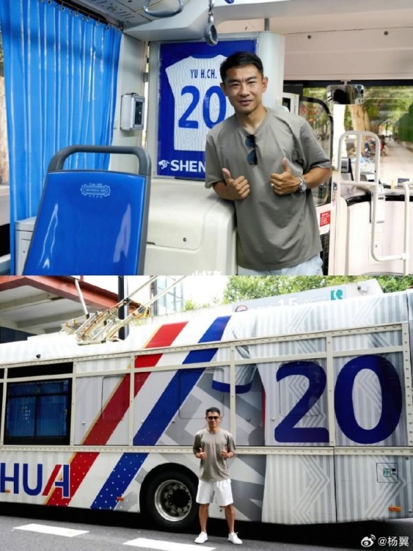 Respect!于汉超与申花主题巴士合影,车身设计融入他的运动活动 服 号
