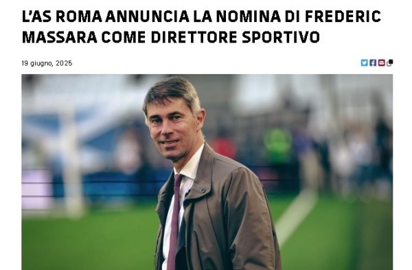 回归罗马!官方:弗雷德里克-马萨拉出任罗马体育总监