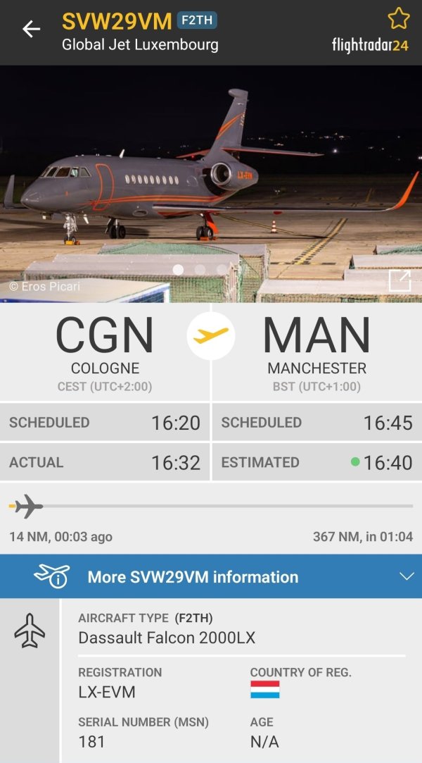 免费足球直播平台推荐 06月19日讯 据记者Nicholas Bieber透露,维尔茨已搭乘私人飞机飞往英国,准备完成前往利物浦的转会! 维尔茨的航班号也已经被披露,据悉利物浦为了尽量保密,在最后时刻才安排了这次航班。维尔茨将先飞抵曼彻斯特,随后前往利物浦完成第一阶段体检! 航班信息中可以看到,维尔茨从科隆当地时间16:32(北京时间22:32)出发,预计将于英国时间16:40(北京时间23:40......查看更多