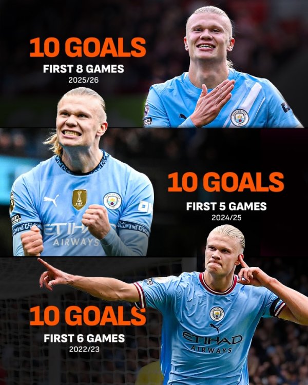 唯一的对手是自己!哈兰德英超前8轮得分 上双,英超只此一人!